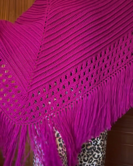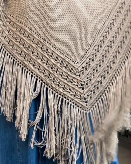 Ideal para cualquier temporada, este chal envuelve con delicadeza y aporta ese toque atemporal que solo lo auténtico puede ofrecer.