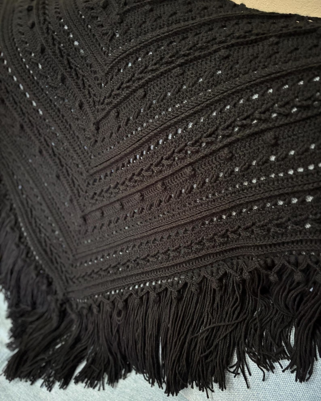 El Chal Aurora combina elegancia artesanal y calidez invernal. Tejido a mano con lana acrílica de alta calidad, destaca por su textura en relieve, su tacto suave y su capacidad para envolver con ligereza y confort.