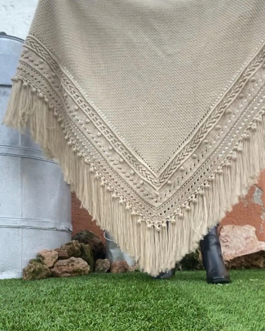 El Chal Aurora combina elegancia artesanal y calidez invernal. Tejido a mano con lana acrílica de alta calidad, destaca por su textura en relieve, su tacto suave y su capacidad para envolver con ligereza y confort.